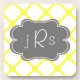 Custom Monogram Yellow and White Art Deco Pattern Coaster