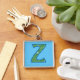 A very pretty Keychain with the initial 'Z' in a multicoloured floralblue and green 'Periwinkle' pattern on a sky blue background. You can easily change the shape and size of the keychain as well as the background colour (by using the Edit button). And if you see one of my other patterns that you prefer, please contact me through my store and I will create one at no extra charge.