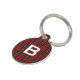 Handsome monogrammed dog tag with the front done in the red, black, and yellow clan Brodie plaid pattern, with a big white one letter monogram. The back of the tag is done in red, with white text. Personalise the monogram and the text on the back to suit your needs.