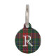 Fun monogrammed dog tag with the front done in the red, blue, green, yellow, black, and white clan MacLean plaid pattern, with a big white one letter monogram. The back of the tag is done in dark green, with white text. Personalise the monogram and the text on the back to suit your needs.