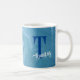 MUG MONOGRAMED OCEAN WAVE SURF NAME and INTITIAL IN BLUE.