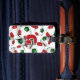 This soccer themed luggage tag is printed on the front with the image of a cluster of varied size red, green & white soccer balls - customise with the athlete's monogram on the front and address info on back - by katz_d_zynes