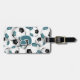 This soccer themed luggage tag is printed on the front with the image of a cluster of varied size teal, black & white soccer balls - customise with the athlete's monogram on the front and address info on back - by katz_d_zynes
