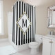 Custom Monogrammed Black and White Striped Pattern Shower Curtain