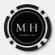 Custom Monogrammed Elegant Minimalist Black Poker Chips. The elegant dotted border is reminiscent of milgrain, which is a jewellery-detailing technique often used for engagement and wedding rings. The colour of text, dotted border, and background can be changed.