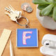 A very pretty Keychain with the initial 'F' in a Pink, Green and White pattern of roses on a Sky Blue background. You can easily change the shape and size of the keychain as well as the background colour (by using the Edit button). And if you see one of my other patterns that you prefer, please contact me through my store and I will create one at no extra charge.