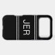 Stylish custom design features up to three bold letter initials in a shadowed white font on a classic black background. Background is divided into thirds by two matching stripes above and below the initials. Simple to use modern template allows for easy personalisation. E-mail beachpausedesigns@gmail.com or use the message link in this listing with questions or custom colour requests.