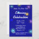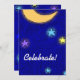 A custom celebration invitation with script and block letters and elegant vintage art of a colourful glowing moon and stars against a blue sky etching. Customise it to change fonts, add your logo, and more, even save your design for later.