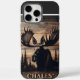 A wooden plaque with a detailed carving of a moose head with large antlers, and a forest silhouette in the background. The name Chales is written beneath the image in a decorative font.