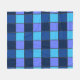 Refresh your space with this cool and contemporary "Blue Mosaic" pattern. The artwork features a grid of squares in a monochromatic palette of navy, royal blue, and cyan, creating a look reminiscent of classic swimming pool tiles, retro 8-bit video game graphics, or a modern patchwork quilt.