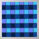 Refresh your space with this cool and contemporary "Blue Mosaic" pattern. The artwork features a grid of squares in a monochromatic palette of navy, royal blue, and cyan, creating a look reminiscent of classic swimming pool tiles, retro 8-bit video game graphics, or a modern patchwork quilt.