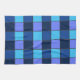Refresh your space with this cool and contemporary "Blue Mosaic" pattern. The artwork features a grid of squares in a monochromatic palette of navy, royal blue, and cyan, creating a look reminiscent of classic swimming pool tiles, retro 8-bit video game graphics, or a modern patchwork quilt.