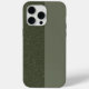 This customisable iPhone 15 Pro Max case features a bold split-tone design in two earthy moss green finishes: one smooth and matte, the other with a fine, noise-textured speckle. The contrast is subtle but striking — natural yet modern, neutral yet graphic. This makes it the perfect base for corporate branding, team logos, or personalised initials.