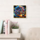 Custom motorcycle revving on a patriotic backdrop square wall clock