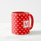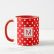 Custom Mug With White Polkadots Art On Bright Red