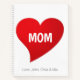Custom Mum, red heart white letters spiral Notebook, sketchbook or recipe book