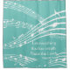 Elegant teal Christian Scripture shower curtain, designed with musical notes. There is customisable text that says LET EVERYTHING THAT HAS BREATH PRAISE THE LORD, which is based on Psalm 150 and which you can personalise to suit your requirements. Available in other colours.