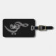 A classy simple black/white music themed luggage tag - white treble and bass clefs against a textured black background. Music Love. Personalise it with your details at the back =)