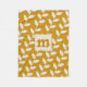 Custom Mustard Retro Leaf Pattern Monogram Fleece Blanket