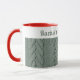Get cosy this winter with a mug dressed in a warm sweater. This hot winter warming mug features a muted pastel green sweater pattern and the text 'Hugs & Hot Cocoa in the same colour. You can edit the text and opt to replace existing name with your own. Personalise this mug for yourself or for someone special. Makes a great birthday and christmas gift.