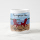 Reminisce about your favourite cabin on the lake with this customisable "my happy place" mug. Featuring a treelined lake view with beautiful red Adirondack chairs this mug is sure to bring the memories flooding back.