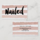 A modern, stylish custom logo nailed, nails technician artist business card with modern hand lettering style brush typography in black on an elegant faux rose gold glitter ombre and pastel blush pink. The white background colour is fully customisable If you need any customisation, don't hesitate in contacting me