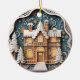 Celebrate the magic of the season with this charming personalised gingerbread house Christmas ornament. One side features a beautifully detailed winter scene of a cosy gingerbread-style home surrounded by snow-covered trees and twinkling stars, while the reverse side can be customised with your family name and year. Perfect as a keepsake to mark a special Christmas or as a heartfelt gift for friends, neighbours, or new homeowners, this ornament adds a sweet and festive touch to any holiday tree.