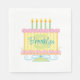 A yellow, pink, green and blue birthday cake with the custom number 5. Add the birthday girl's name to this pretty whimsical birthday party napkin to make a uniquely personal style.