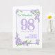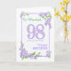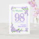 A very pretty 98th birthday card for you to customize with the name of the recipient. There are clusters of blue and purple Phlox flowers around the narrow purple border, painted by hand in watercolours. The front cover greeting is, '98 years young today! HAPPY BIRTHDAY!' on a lightly textured white, basket-weave background and the number 98 is filled with a matching check gingham pattern. There is plenty of space at the top for you to add the name of the recipient and the inside message can also be personalized.