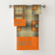 This elegant towel set would be a great addition to any bathroom. The towels feature an abstract pattern in orange and sage green squares, with abstract background that will add a modern flair to your bathroom décor. They can also be used as decorative accents or regular day use. Perfect for man or woman bathroom. Also you can custom with your own name for a more personalised feel.