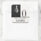 A modern black and white square birthday sticker personalized with the name and age of the guest of honor. Clean typography and a minimalist layout make it perfect for party favors, gift bags, envelopes, or décor accents. A simple yet stylish detail that ties your birthday celebration together beautifully.