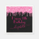 Custom Name + Age Hot Pink Dripping Glitter Black Napkin