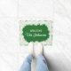 Custom name and colour daisy flower floral small door mat. Make your own custom monogrammed indoor / outdoor doormat with custom background colour and text. Add your own welcome message, family name, surname, initial letter or funny quote. Cute gift idea for new home / housewarming, wedding venue, store, shop, company office, business etc. Stylish script typography. Personalizable template. Create your own classy floral entry mat / rug for front door / entryway or hall. Customisable home decor / decorations for your chic house. Cute gift idea for couple or newly weds. Inspired by nature.