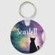Custom Name Artistic Cute Cat Moon and Galaxy Key Ring