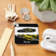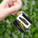 This keychain is shown in a black colour with a auto race car print design with a custom sample name.