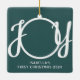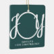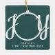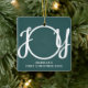 This cute Baby's First Christmas Photo Ornament is decorated with the word JOY in stylish script typography on a green background.