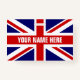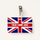 Custom name badge with British Union Jack flag. Plastic name tags available with clip on and lanyard option. Customisable text. Add a photo on the back optionally. Useful ID for office, volunteer work, events, meeting, gathering, delegation, sports team, group, music festival, party and more. English pride. UK flag of United Kingdom, Great Britain.