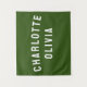 custom name wall art banner, with any quote rustic style, kid's room customised decor decoration, personalised nursery baby kid child, personalised back drop child's play, customise playroom new girl daughter, first middle your girl's backdrop, unique shower gift for her, baby's tapestry hanging flag present, pretty girly granddaughter forest green