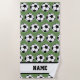 Custom name beach towel with soccer ball print. Cool Birthday gift idea for soccer player, kids, mum, dad, friend, team, league etc. Sports presents for boys and girls. Add your own personalised name, monogram or quote.