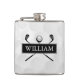 Custom Name Black And White Clubs And Ball Hip Flask
