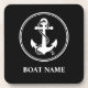 Rope & Anchor Custom Name Black and White Coaster Cork Back