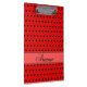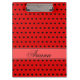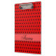 Custom Name, Black Hearts Pattern on Red Clipboard