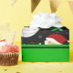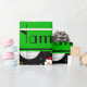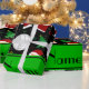 Modern and trendy Custom name sports black volleyball balls, santa claus, green christmas trees, red, green and yellow stars, white snowflakes, snow, red santa hats pattern background and green stripe personalised with just add your name gifts or monogram gifts or your initials for a unique gift. Sports gift ideas for men and boys and girls. Ideal for christmas presents.