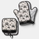 Custom Name Black White Butterfly Pattern Oven Mitt & Pot Holder Set