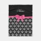 Trendy, fancy, chic and pretty black and white damask floral pattern and pink glitter bow (not real glitter) ribbon custom personalised with your name gifts or monogram gifts or your initials Ideal for weddings, birthdays, and much more featuring an elegant and traditional fancy lettering. Damask gift ideas for women.