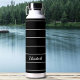 Custom Name Black & White Striped Modern Pattern Water Bottle