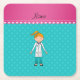 Custom name blonde girl doctor turquoise dots square paper coaster