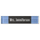 This desk nameplate design features a pattern involving many blue dots/circles. It also features a personalised name in white coloured text within a dark coloured area. It could perhaps be used on the desk of a teacher, educator, professor, doctor, lawyer, or some other professional. [~Z0000047]
