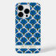 Custom name Blue flowers golden outline pattern White Case-Mate iPhone 14 Pro Case.