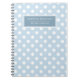 Unique kids office stationery notebook with a blue and white polka dot pattern on a black background, custom name template / subject title template. A girly, cute and cool gift for back to school.